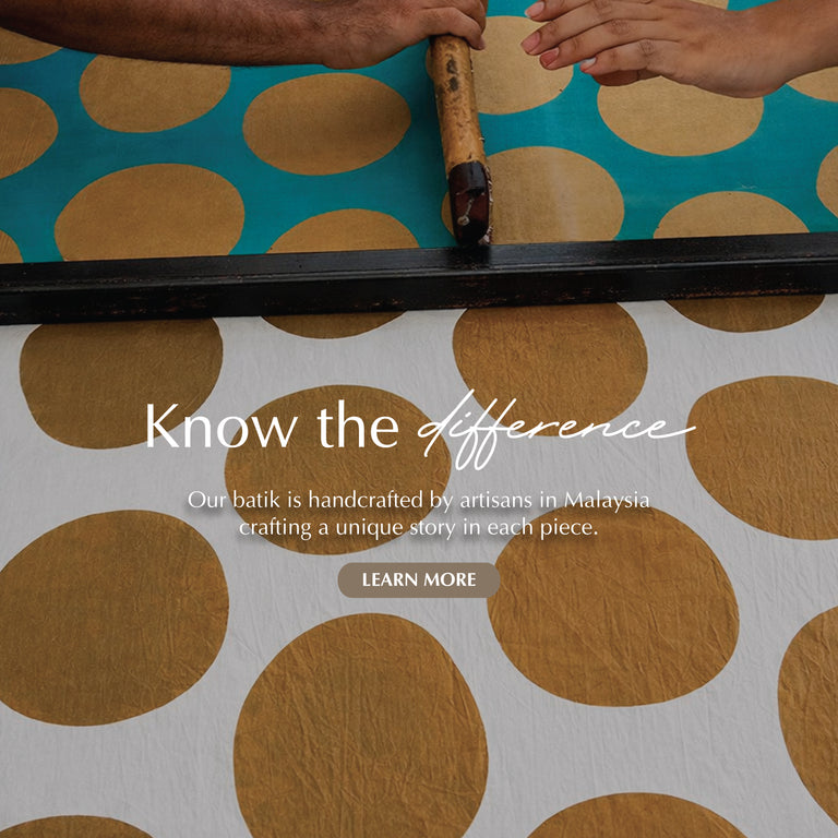 Your purchase changes lives. Since 2009, we've patterned with 400+ artisans from marginalized communities in Malaysia providing fair wages and skills training through the ancient art of batik.