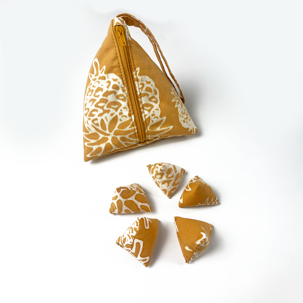 Design: Inside the pouch are 5 pieces of “batu” as playing pieces. The size of the pouch is 13cm L x 14cm W x 12cm H and it comes with an instruction card on how to play this beloved Malaysian traditional game.