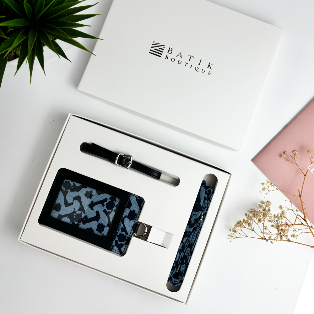 This Batik Lanyard and Luggage Tag gift set is lined with authentic Malaysian batik cotton in navy blue colors. It’s the perfect unisex corporate gift for those who value quality and functionality.