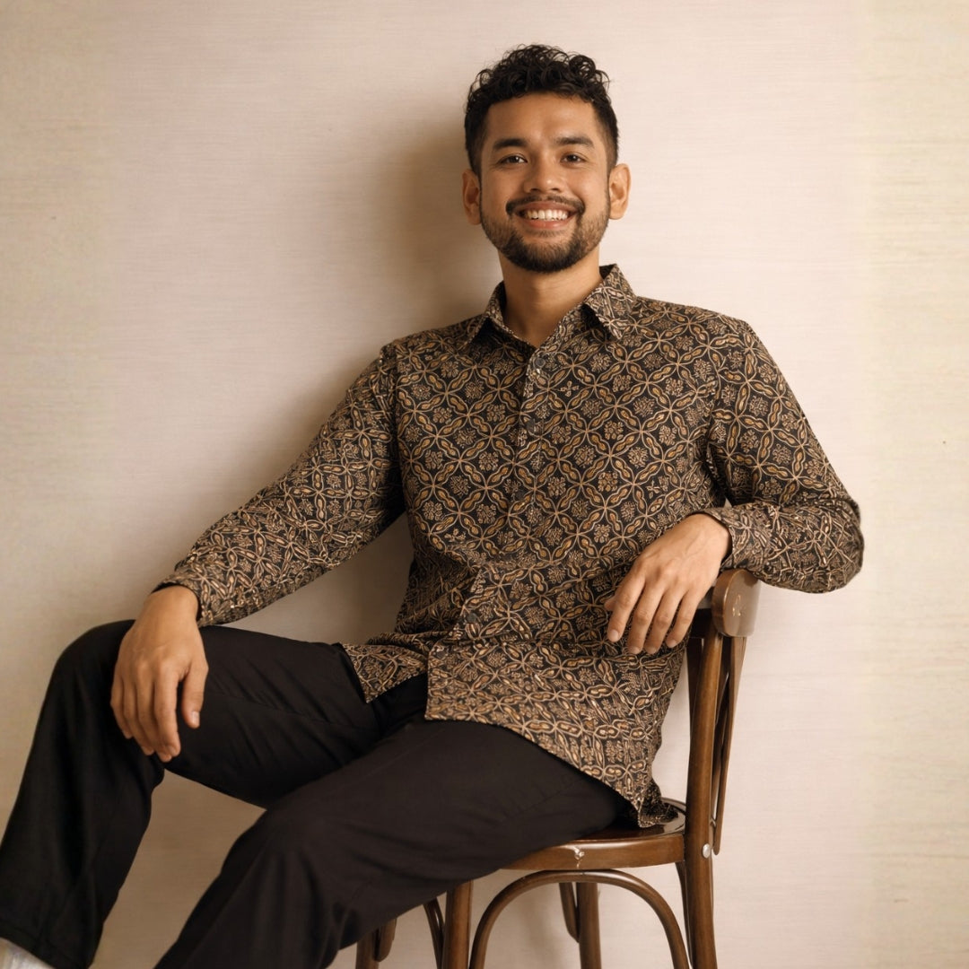 Men's Long-Sleeved Batik Shirt - Arang Kuih Cara