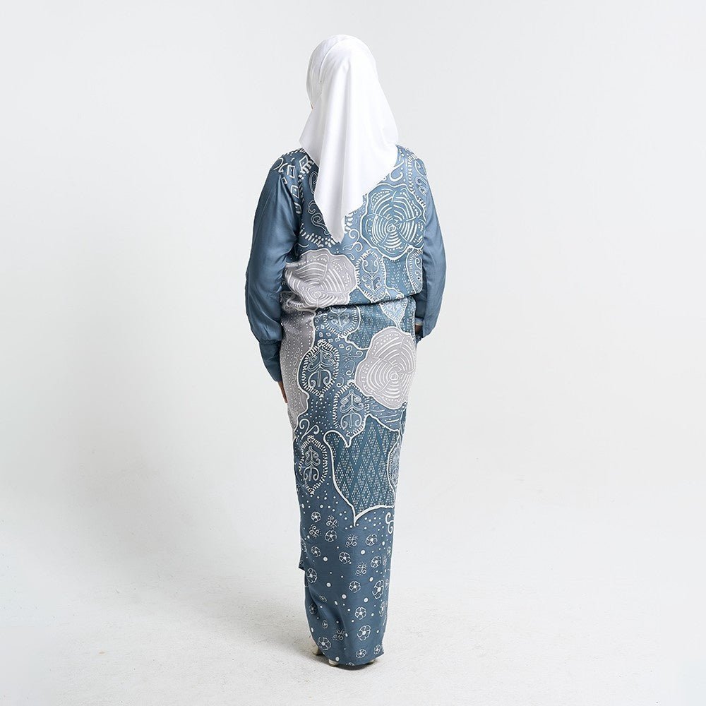 Slate Petola blends different shades of grey-ish blue to create a harmonious standout look for this Raya season.