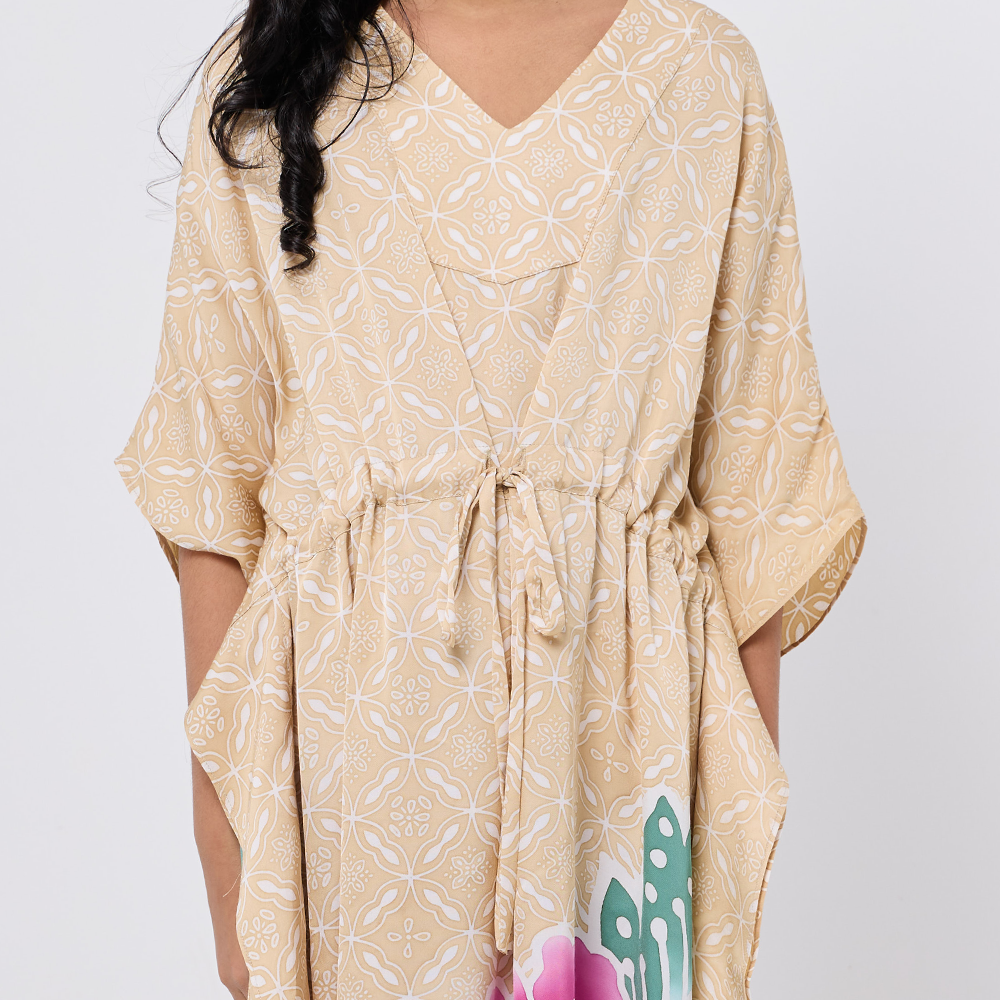 • Made from premium 50% silk 50% cotton, our Alysya Caftan is designed for girls who value comfort, elegance, and effortless sophistication in a tropical silhouette